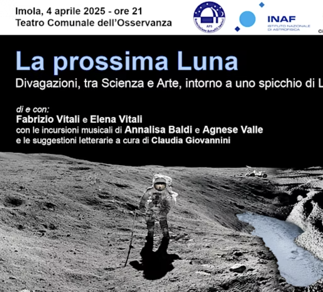 - dalle 20 alle 21 e dopo la conferenza – meteo permettendo, osservazione della Luna e dei pianeti dal parco adiacente al teatro, con i telescopi dell’Associazione Astrofili Imolesi;